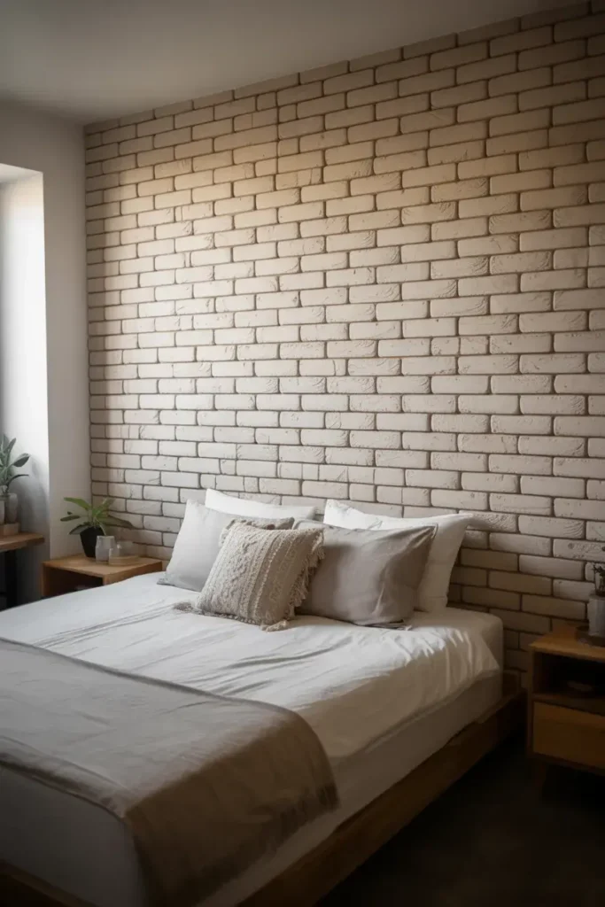 Texture brings warmth to a small bedroom that paint alone cannot achieve. I use high-quality peel-and-stick faux brick panels to add an industrial or rustic loft vibe.