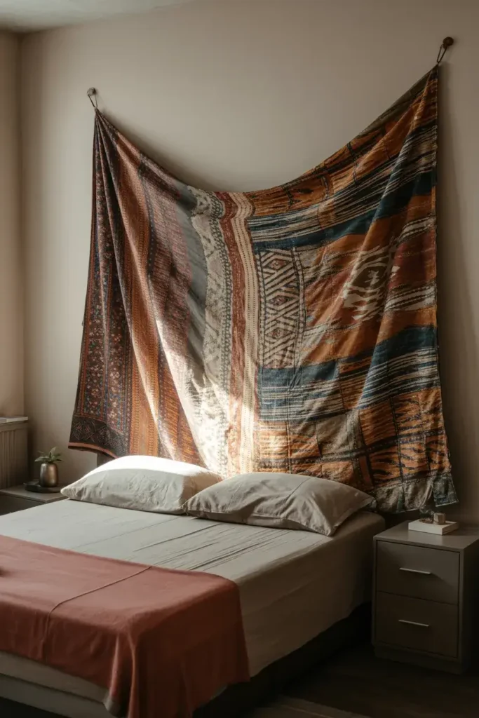 Hanging a large tapestry or fabric piece softens the acoustics and the look of the room. I love this for rentals where painting might not be allowed.