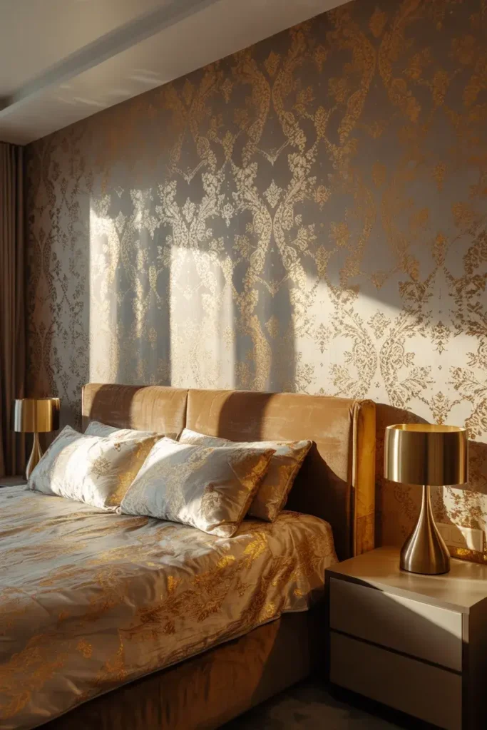 I recommend metallic wallpaper if you want to reflect light. Gold, silver, or copper details can brighten up a dimly lit corner.