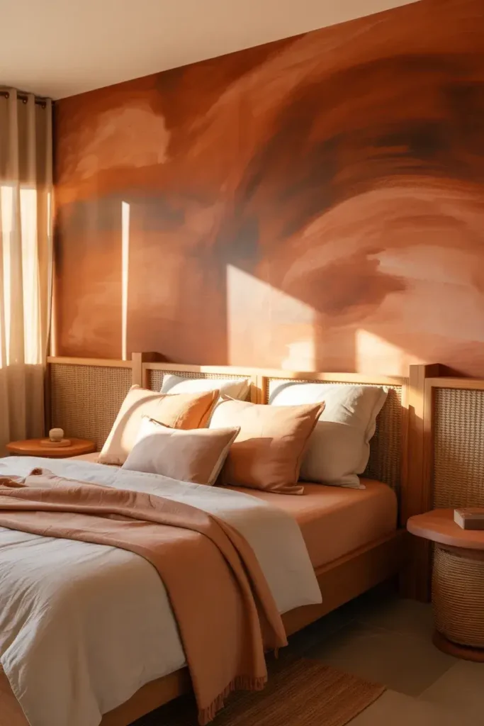 Tip: Pair terracotta with woven textures like a jute rug or a rattan headboard to complete the boho-chic look.