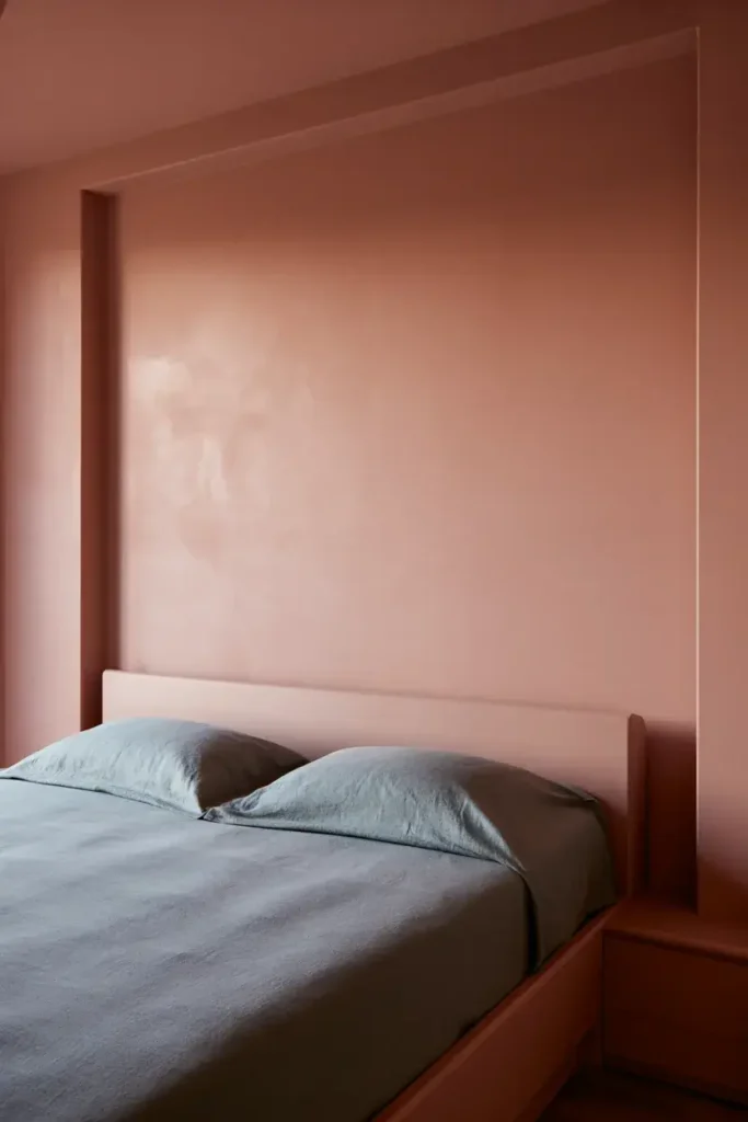 Terracotta brings a grounded, warm energy to a bedroom. While red is typically considered a stimulating color to avoid, earthy terracotta leans more toward brown and orange, which feels cozy rather than aggressive.