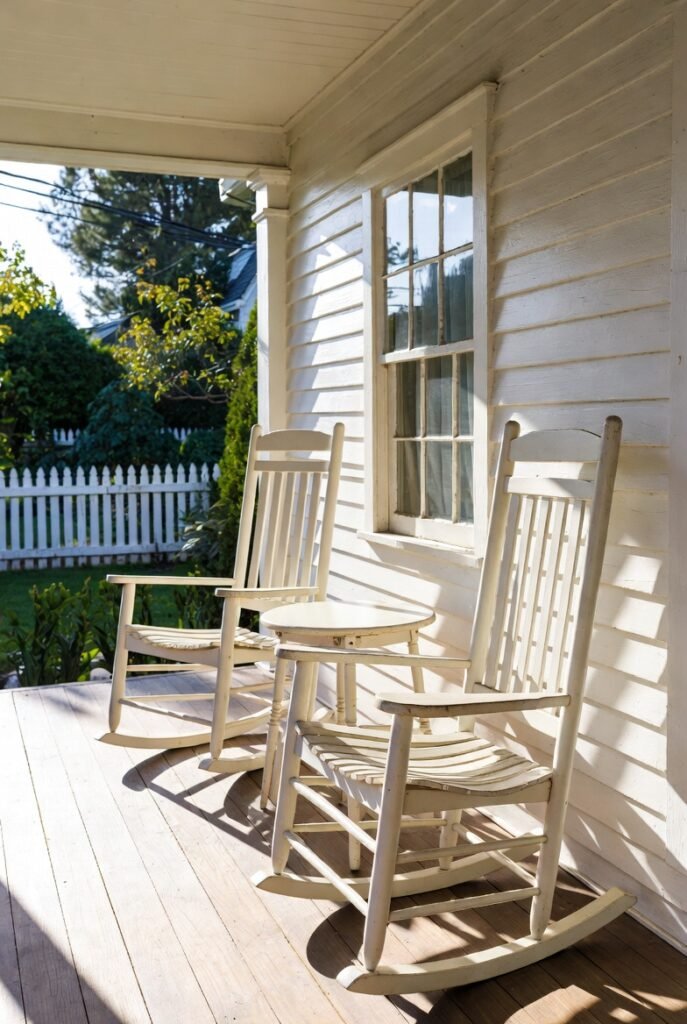 Paint them white or leave them natural wood. Add a small side table for your morning coffee, and you have the perfect spot to watch the world go by.