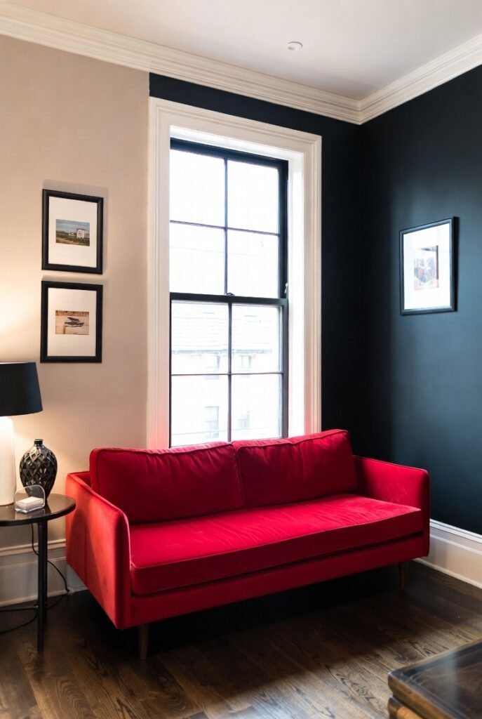 In my experience, pairing navy and red works well in traditional or nautical-themed rooms, adding both warmth and sophistication.