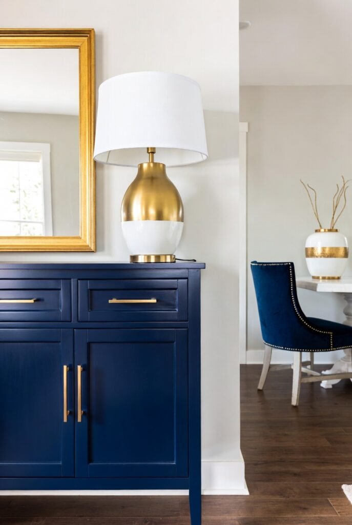 Using gold accents like lamps, frames, or cushions can add a subtle luxury without overwhelming the space.