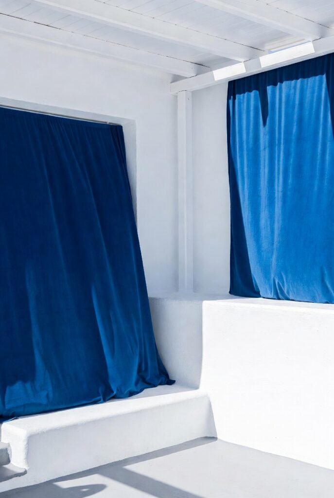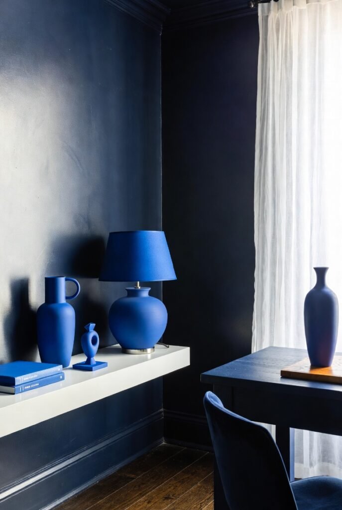 This creates a “coastline” feel. Tip: Use cream-colored linen curtains against a royal blue wall. The texture of the fabric mixed with the paint color creates a rich, tactile experience.