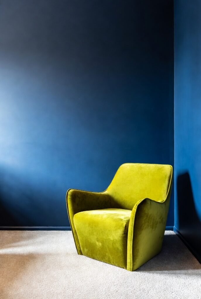 I recommend using chartreuse sparingly. A single chartreuse velvet chair in a royal blue room makes a massive style statement without overwhelming the senses.