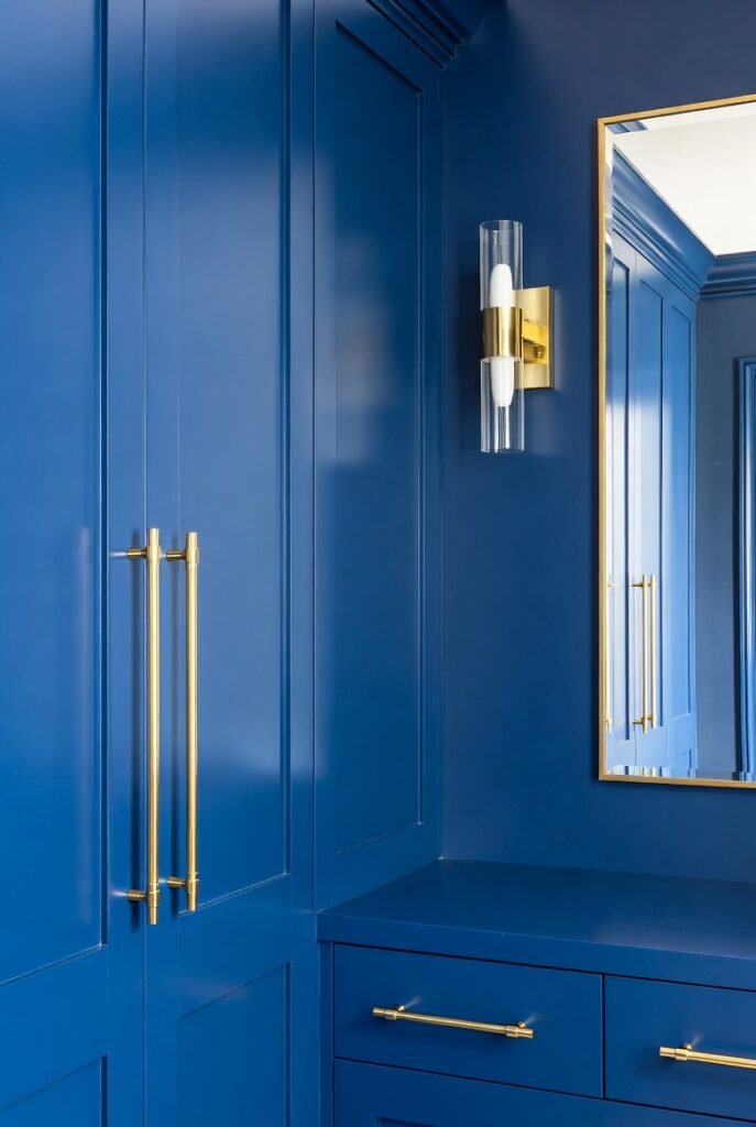 Tip: You don’t need to paint walls gold. simply swap out cabinet hardware, light fixtures, or picture frames for gold metal finishes to elevate your blue room instantly.