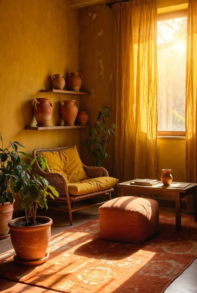 I like to pair a mustard yellow with terracotta pots or a rug featuring rust tones. It mimics the colors of a sunset and makes a space feel instantly welcoming.