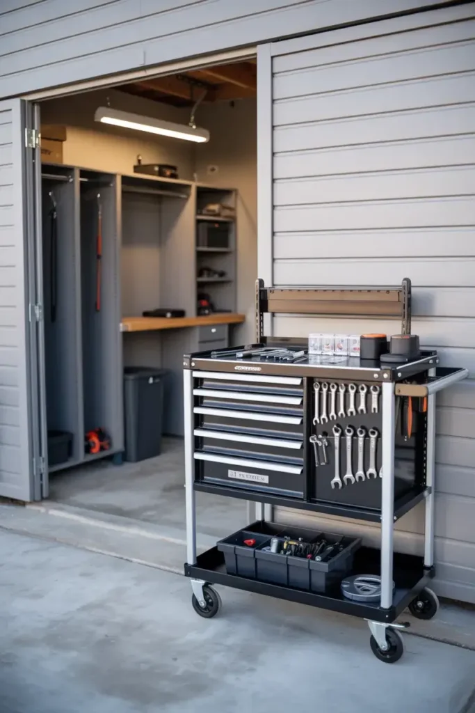I got tired of running back and forth to my tool chest during projects. I bought a rolling tool cart that follows me around the garage. It holds my essential tools and provides a mobile surface to work on.