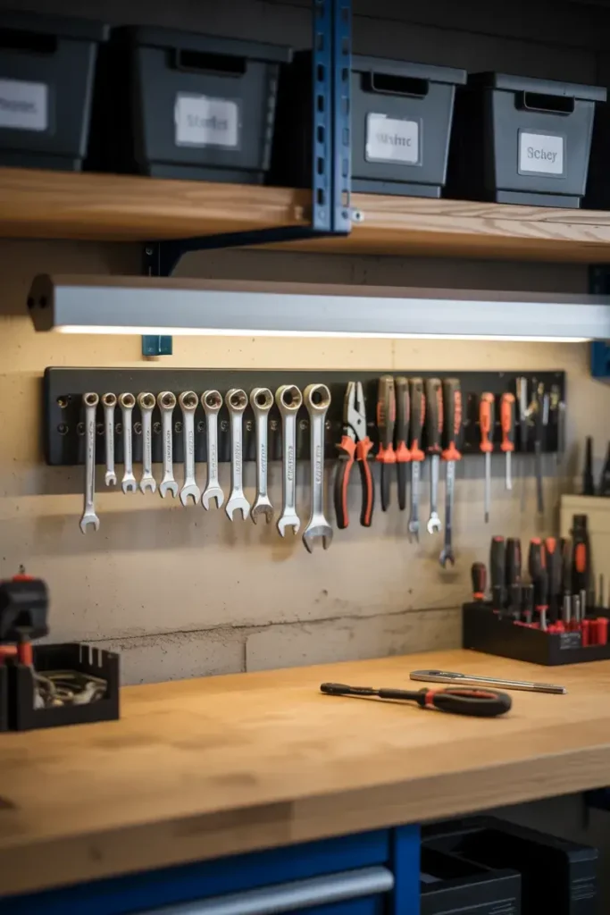 I hate digging through a messy drawer to find a screwdriver. I mounted a magnetic strip above my workbench, and it changed everything. It holds metal tools like wrenches, pliers, and screwdrivers securely in place.