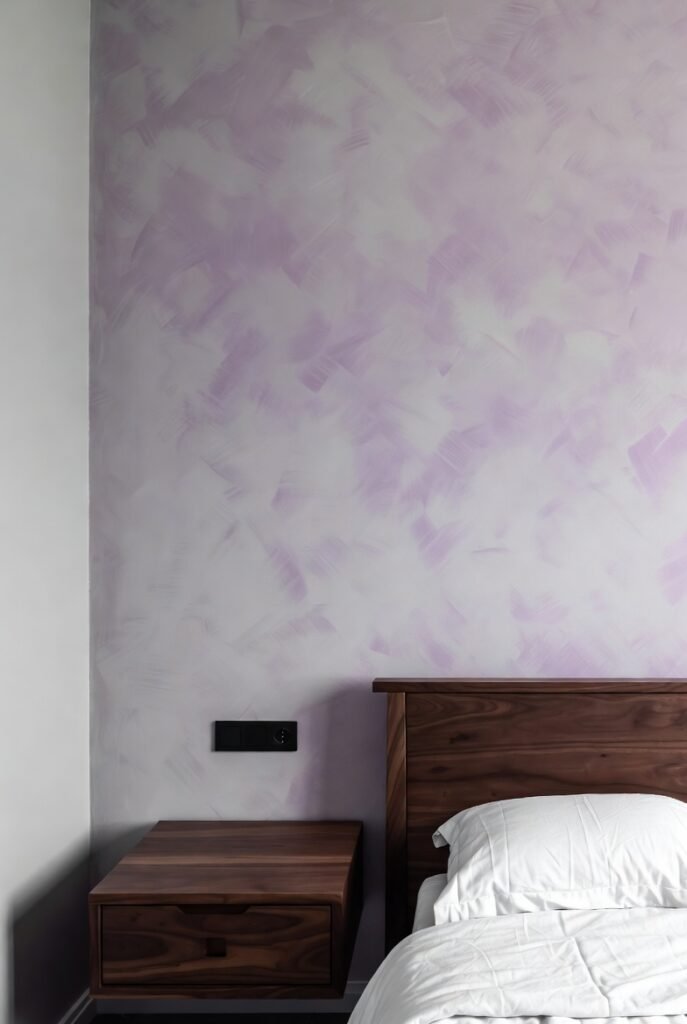 This color pairs beautifully with dark wood furniture, which grounds the ethereal quality of the lavender notes. Keep your bedding simple and white to let the subtle wall color shine without competing for attention.