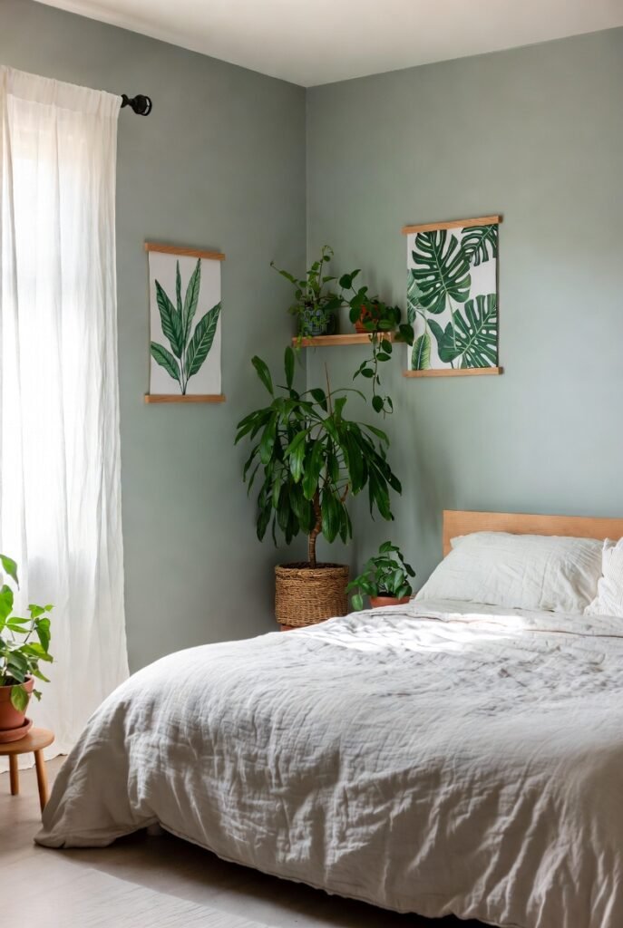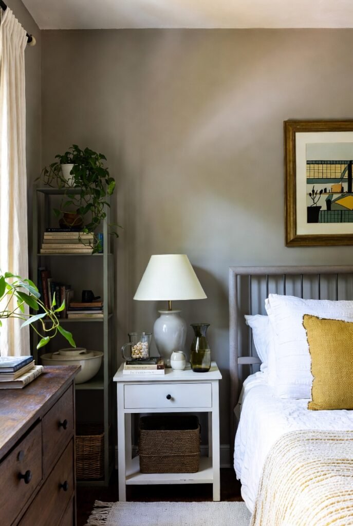 This shade works wonders with botanical prints and real houseplants. The greenery pulls out the earthy notes in the paint, creating a harmonious, organic look that feels incredibly restorative.