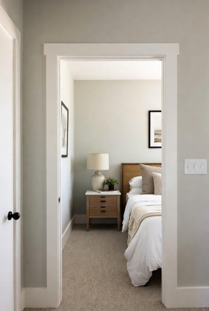 If you prefer a minimalist aesthetic, a whisper-soft gray is your best friend. These shades are so pale they almost read as white but have enough pigment to soften the harshness of pure white walls. Benjamin Moore’s Horizon is a beautiful option that feels like morning mist.