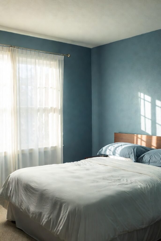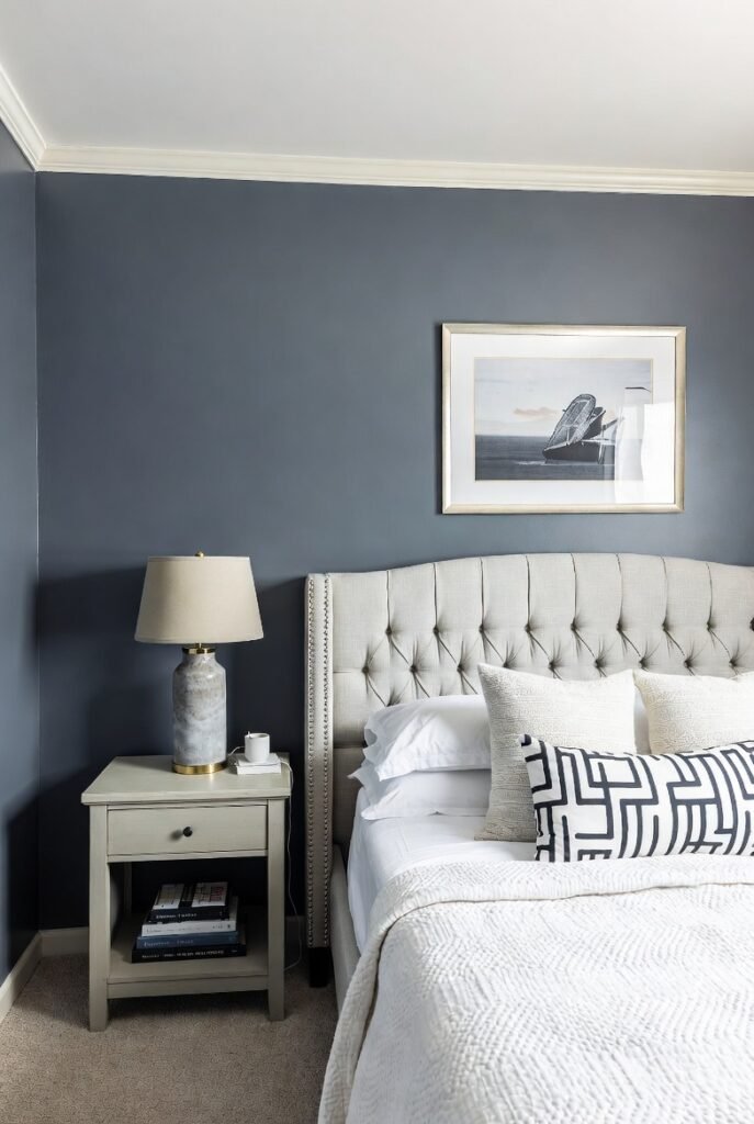 I find that slate gray looks exceptional on a feature wall behind the bed. It anchors the room and creates a focal point, especially when paired with a tufted upholstered headboard in a lighter fabric.