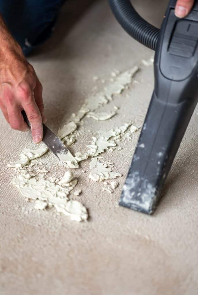 Gently scrape at the paint clumps. You want to break up the crusty top layer without cutting the carpet fibers. Vacuum up these loose paint chips immediately so they don’t get ground back in.