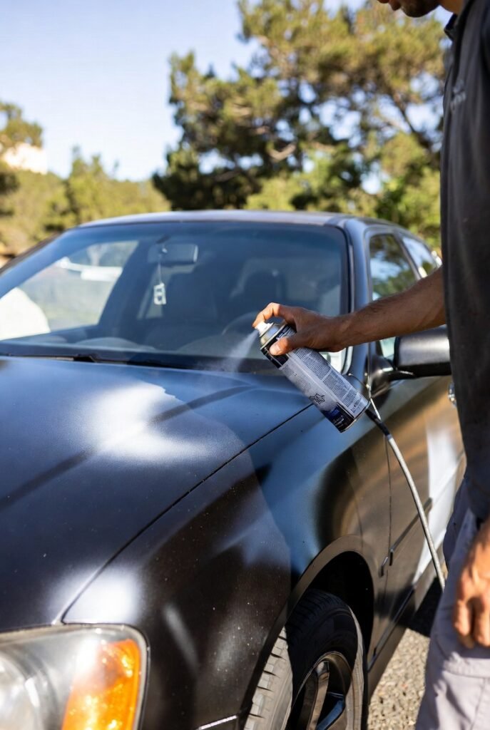 Spray paint consists of pigments suspended in solvents that evaporate once applied, leaving a solid, durable film. When sprayed on a car, this film bonds primarily to the clear coat—the protective layer over the car’s original paint. The adhesion strength depends on factors like the vehicle’s surface texture and the type of spray paint used.