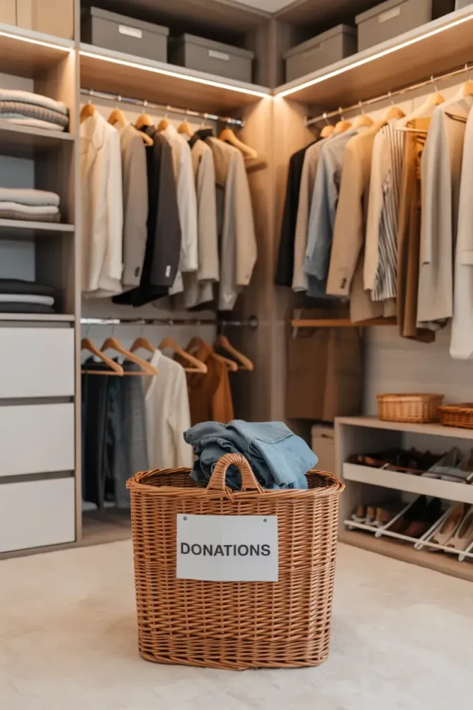 I keep a designated bin or basket specifically for donations. As soon as I try something on and realize I don’t love it, it goes into the bin.