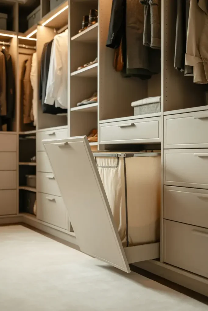 I prefer to keep dirty laundry out of sight. Built-in tilt-out hampers conceal your clothes while keeping floor space clear.