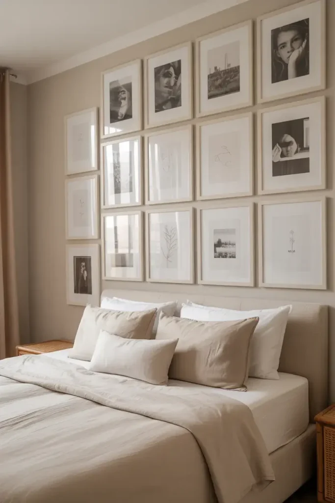 Sometimes the wall itself stays simple, and the “accent” comes from what you put on it. I love a floor-to-ceiling gallery wall using frames in the same neutral color family.