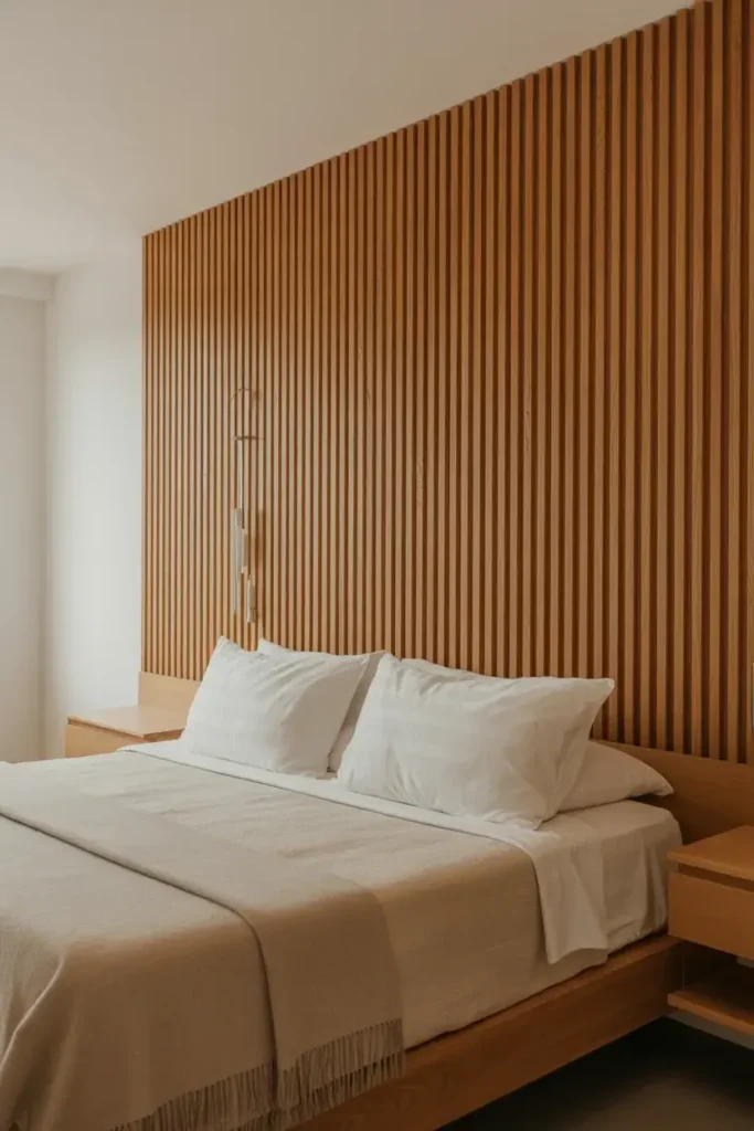 If you want texture, wood slats are my top pick. This look has exploded in popularity recently, with interior designers identifying it as a major trend for 2025.