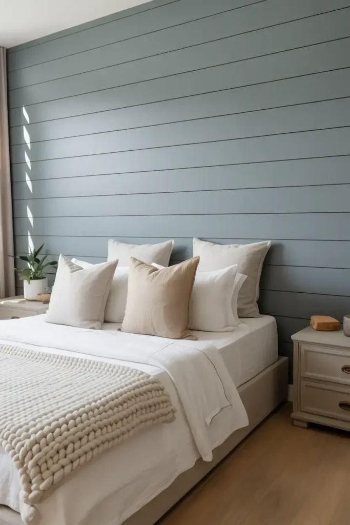 Shiplap offers a timeless, coastal feel that I find very relaxing. The horizontal lines widen the room visually, which is great for smaller bedrooms.