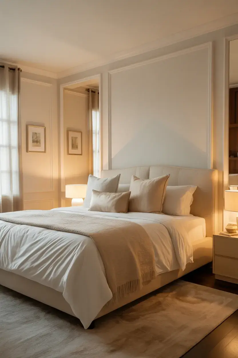 Paint the entire wall, including the trim, in a calming greige (gray-beige). This “color-drenching” technique makes the molding look built-in and expensive.