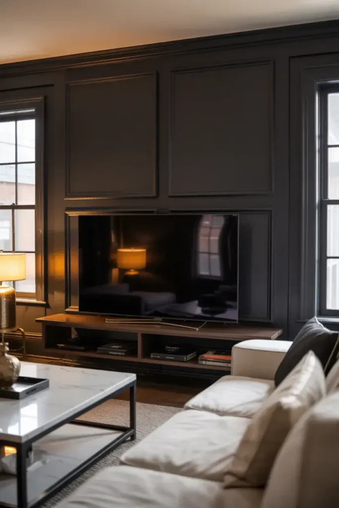 Pro Tip: If you paint the walls this dark, keep the ceiling light to prevent the room from feeling like a cave. Add plenty of warm ambient lighting to keep the space inviting.