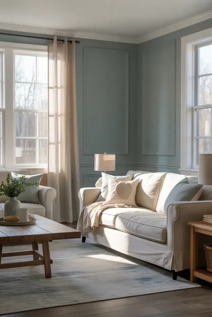 Because it has an LRV of roughly 55, it provides enough depth to contrast beautifully against crisp white trim without making the room feel dark.