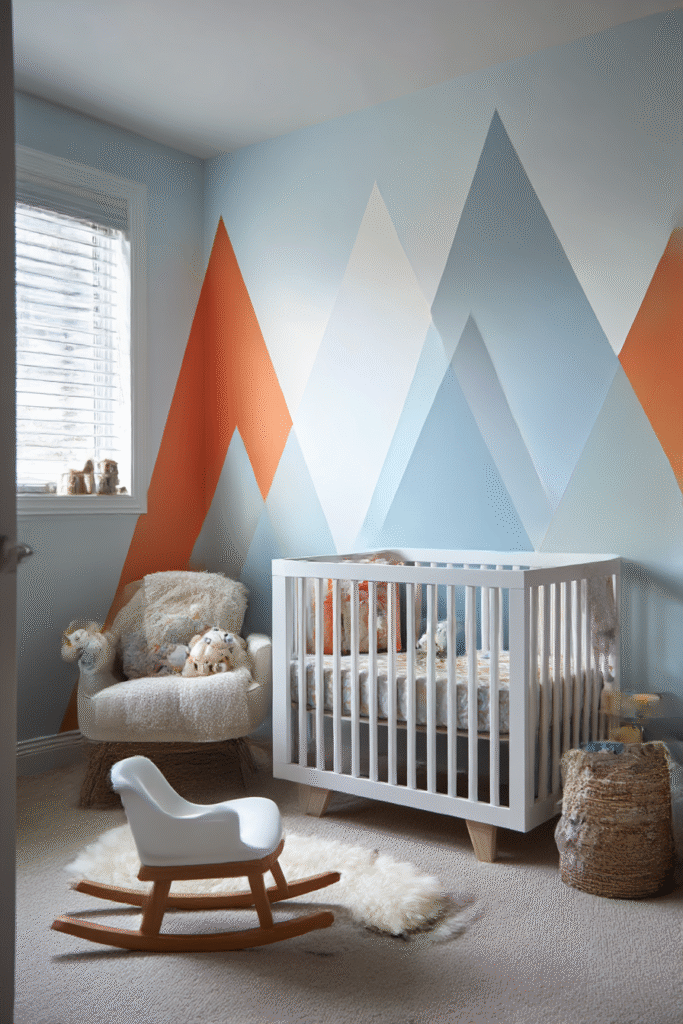 If painting the whole room feels too plain, try a geometric accent wall. Using painter’s tape, you can create triangles, mountains, or diamonds to add visual depth.