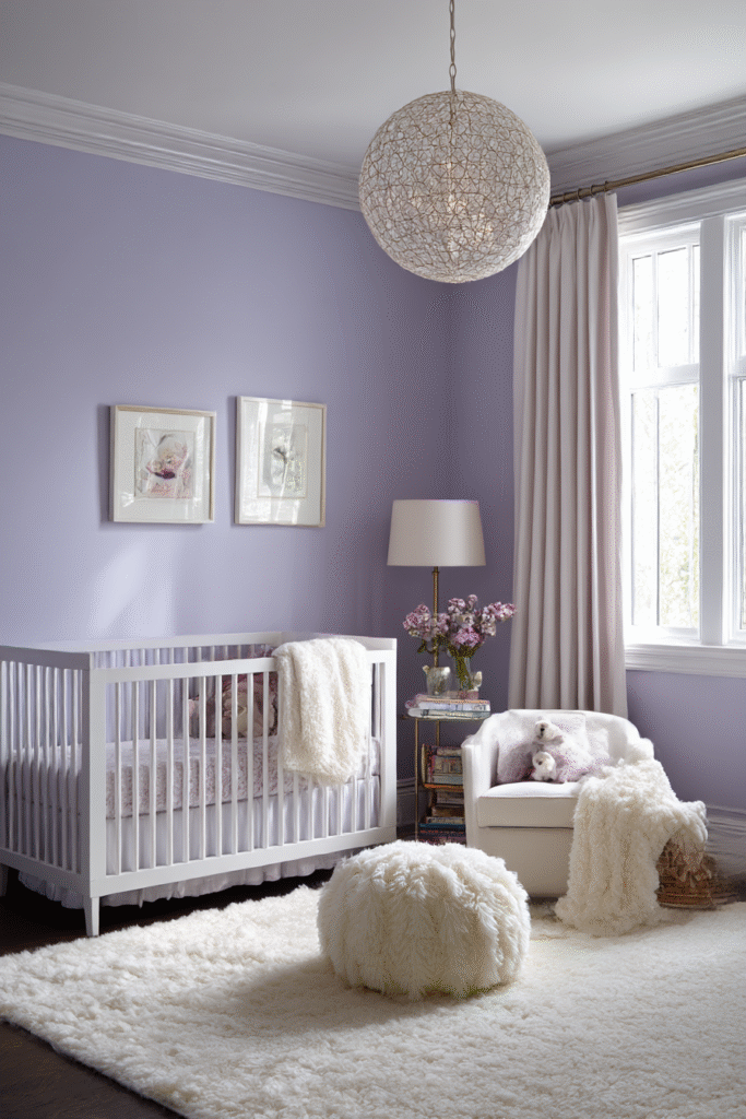This shade works particularly well with white furniture and soft, fluffy textiles. It’s a distinct alternative to pink that still feels soft and gentle.