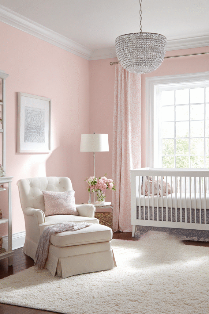 To modernize this classic look, combine pale pink with gray or navy blue accents. This prevents the room from looking too “frilly” and allows the design to grow with your child.