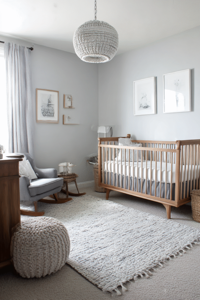 It provides a soothing environment that doesn’t overstimulate a baby’s developing vision. To keep the room from feeling too cold, pair gray walls with warm wood furniture or textured rugs.