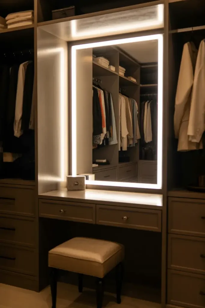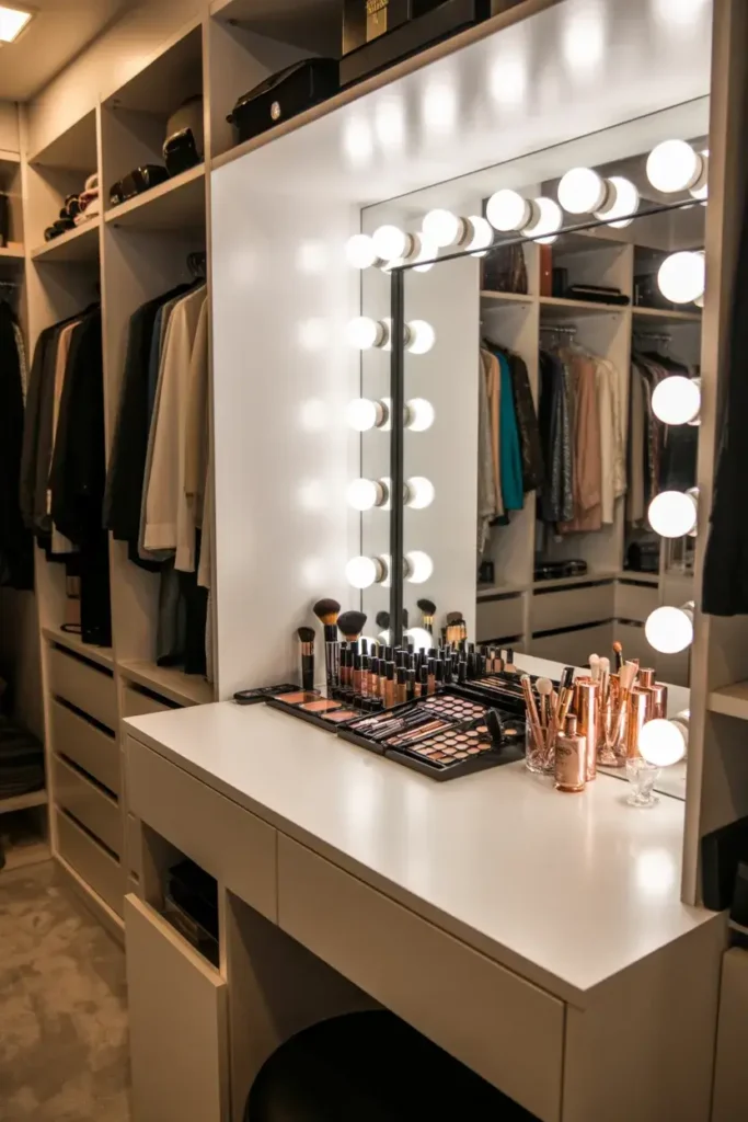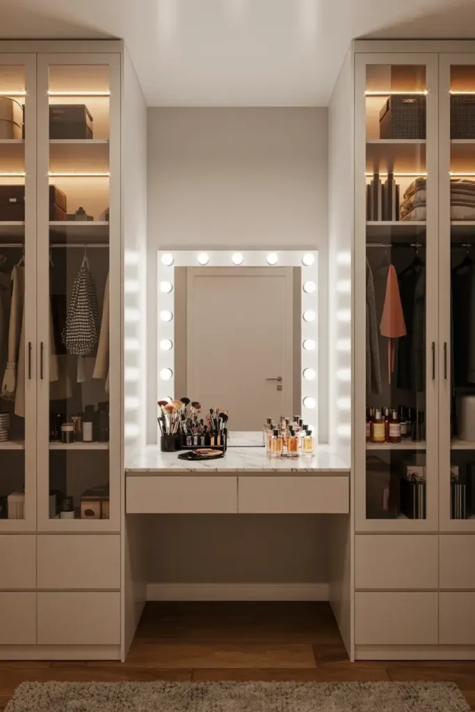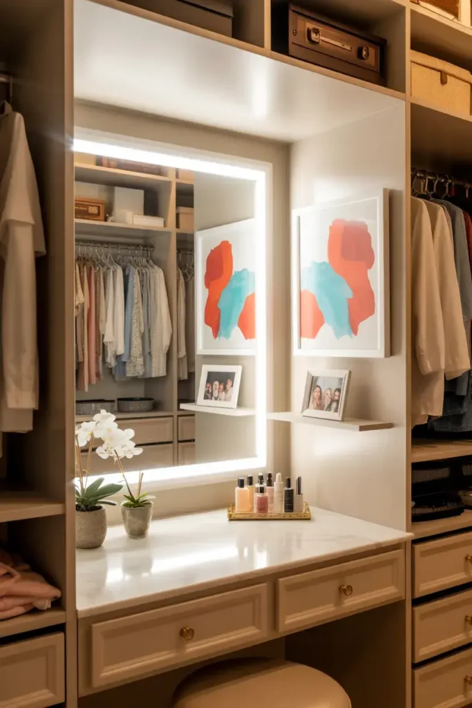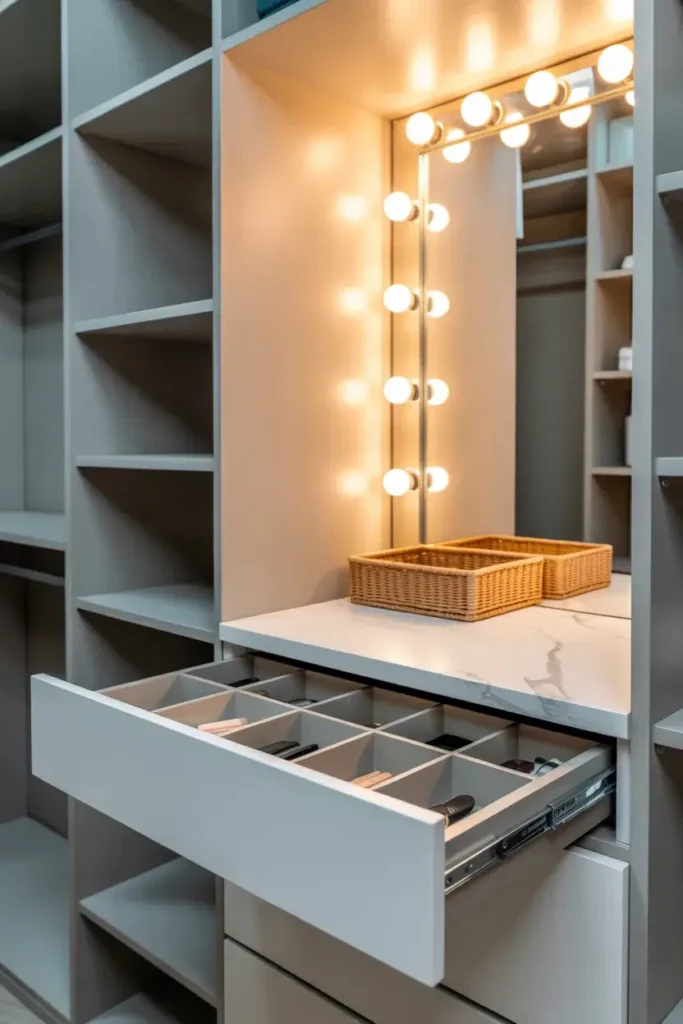 By integrating a vanity into your closet, you create a seamless workflow that saves time and reduces stress.